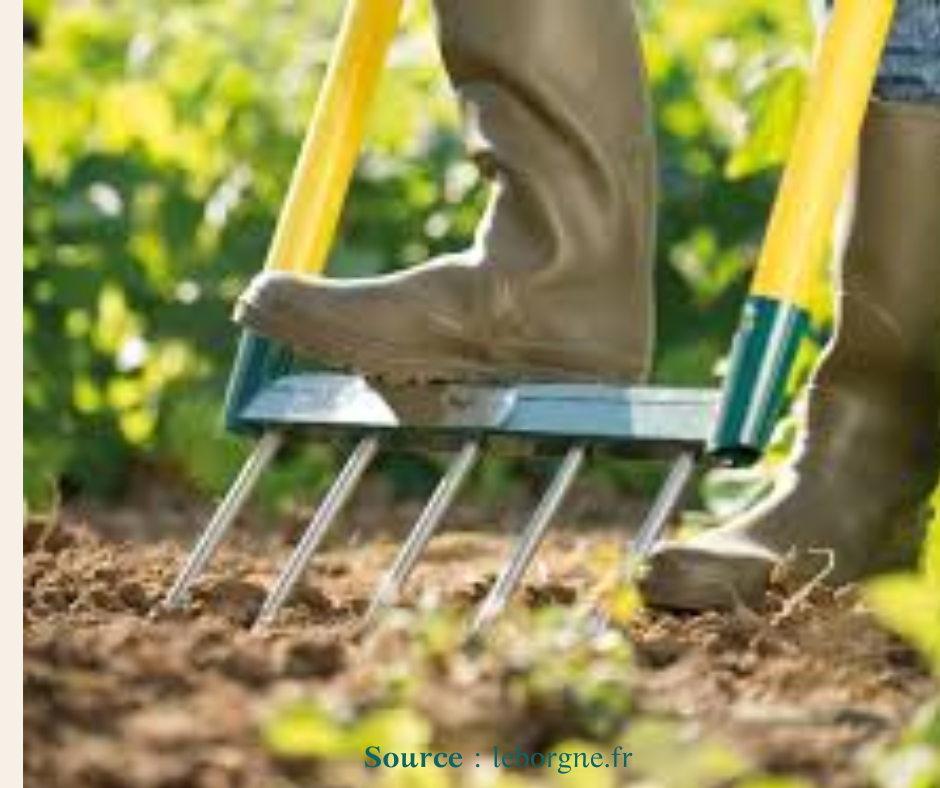 permet de fissurer le sol en profondeur sans inverser les couches. On enfonce l’outil, on bascule légèrement pour créer des failles, puis on retire sans retourner la motte. Cela permet à l’air et à l’eau de circuler, tout en respectant l’organisation du sol.